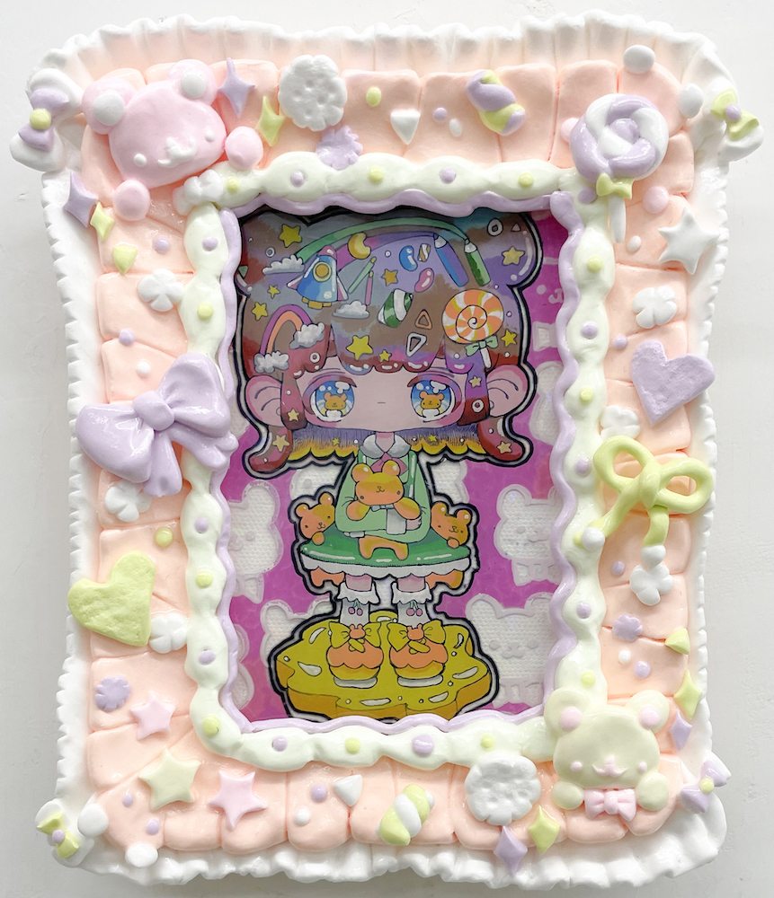 アクリルマーカー、超軽量紙粘土、水彩絵の具、ホログラムシート/キャンバス