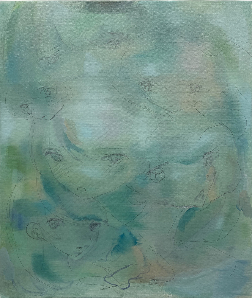 アクリル絵具、油絵具、色鉛筆/キャンバス