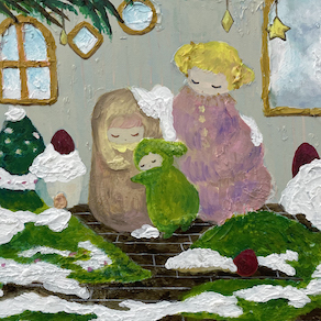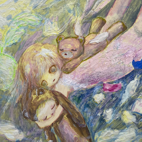 アクリル絵具、色鉛筆、モデリングペースト/木製パネル