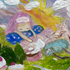アクリル絵具、色鉛筆、モデリングペースト / 木製パネル