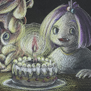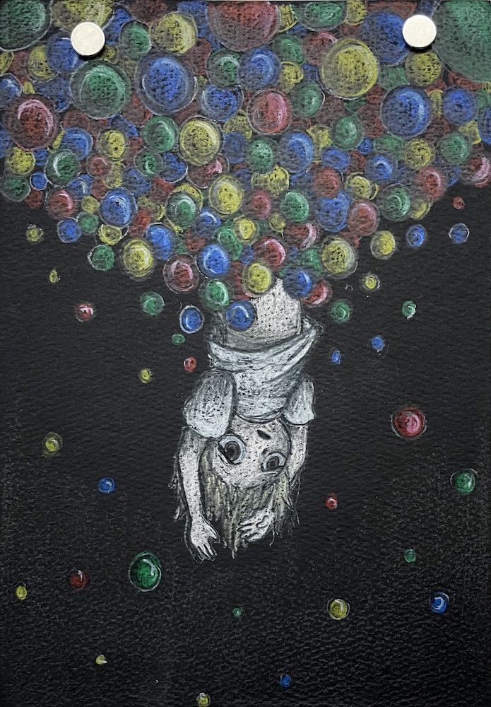 Colored pencil on black paper