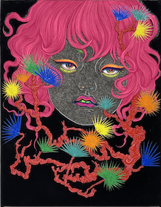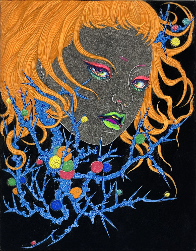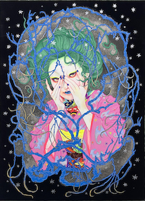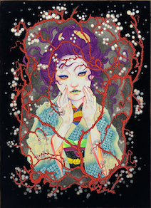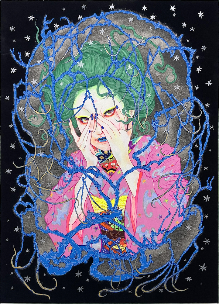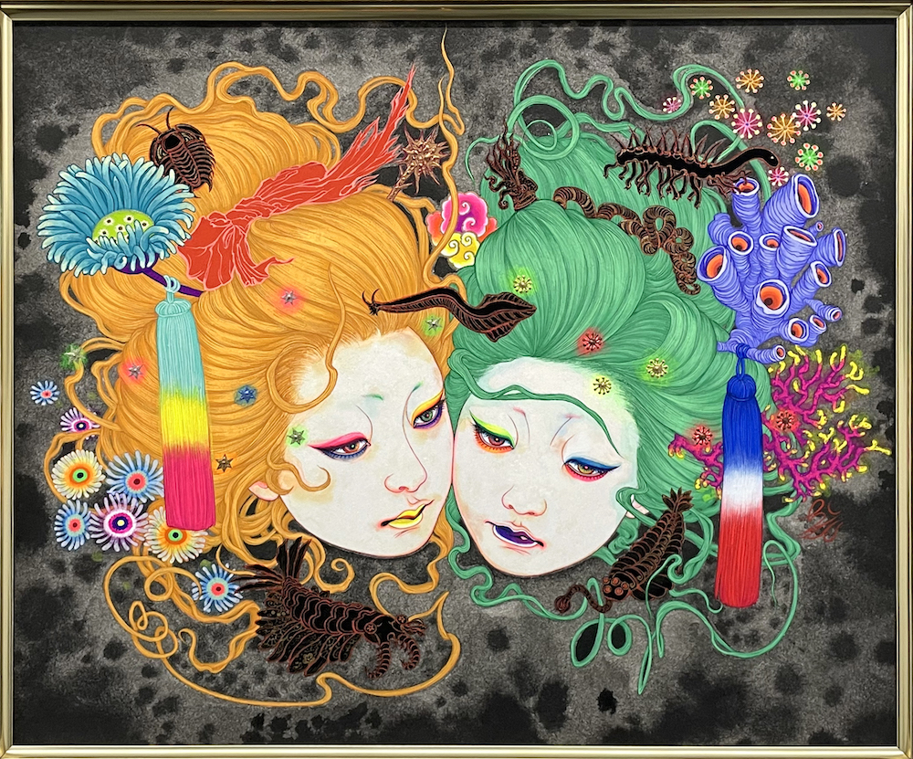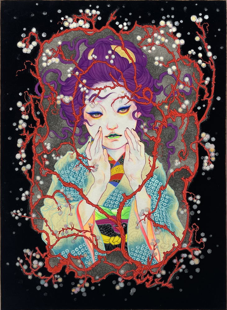 岩絵具、水干絵具、アクリル絵具、胡粉、ジェッソ、墨汁/木製パネル、高知麻紙