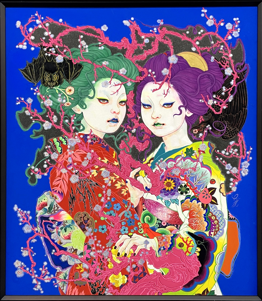 岩絵具、水干絵具、アクリル絵具、胡粉、墨汁/木製パネル、高知麻紙