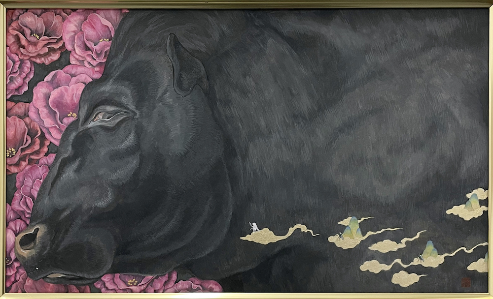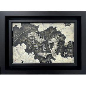 顔彩、岩絵具、水干絵具、典具帖紙/木製パネル、雲肌麻紙