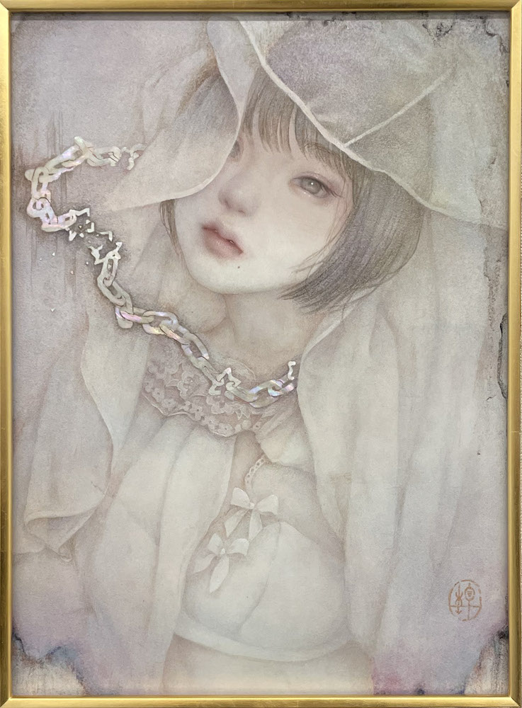 岩絵具、水干、あわび貝/木製パネル,白麻紙