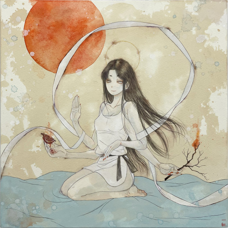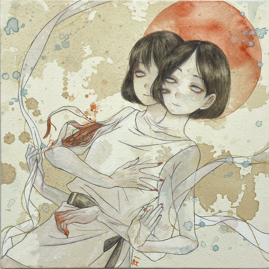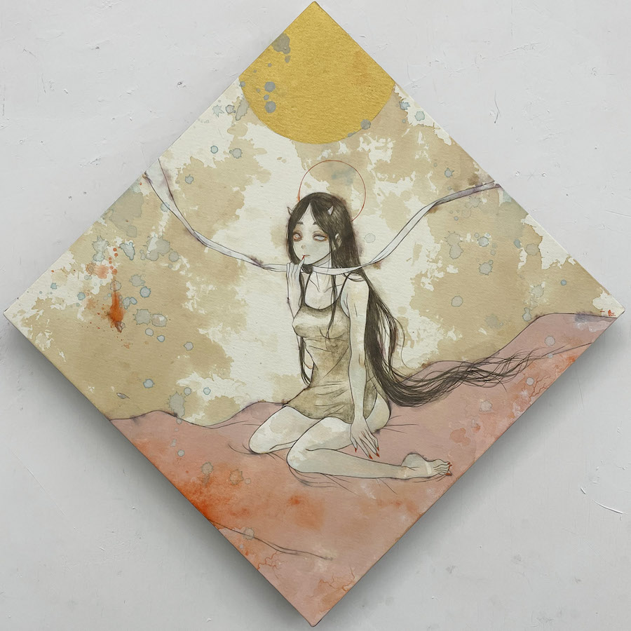 アクリル、水彩色鉛筆/木製パネル、ワトソン紙