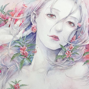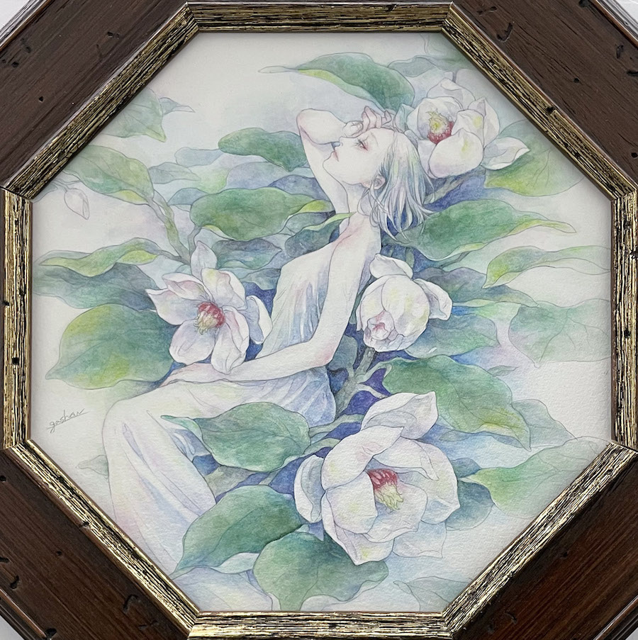 透明水彩、水彩色鉛筆、アクアブロンズ、鉛筆/水彩紙、木製パネル