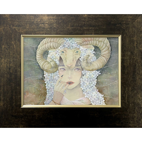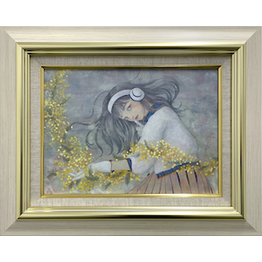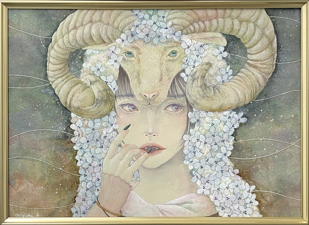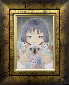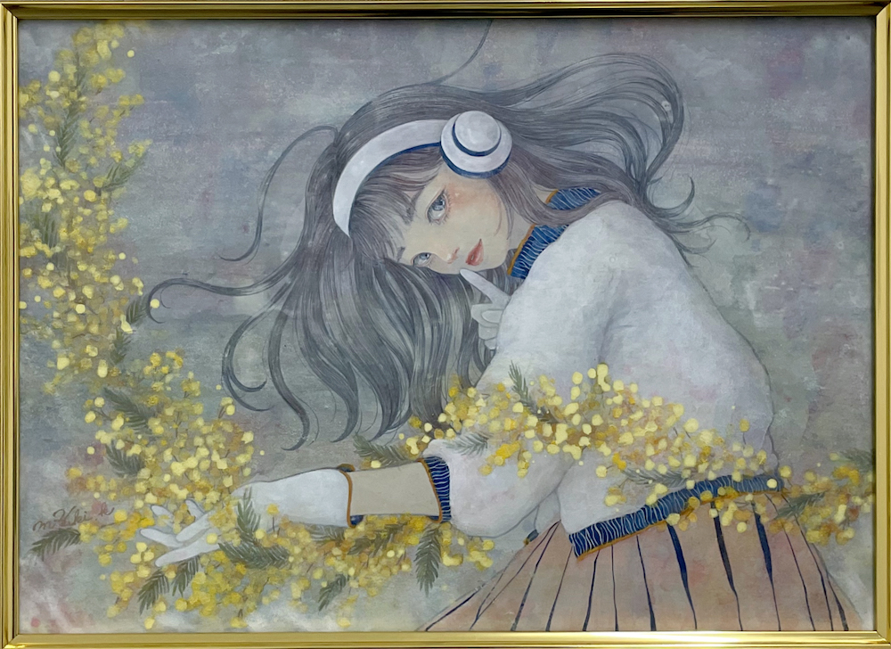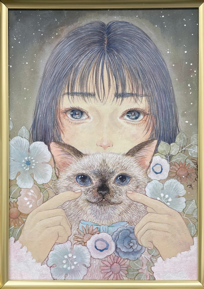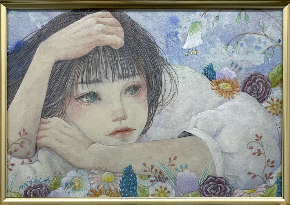 アクリル、水干絵の具、岩絵具、色鉛筆/木製パネルにアートクロス