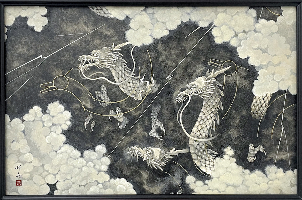 顔彩、岩絵具、水干絵具、典具帖紙/木製パネル、雲肌麻紙